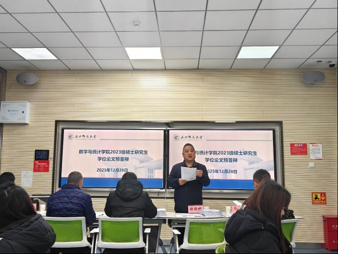 为进一步提升研究生学位论文质量,帮助研究生排查论文撰写中的问题与不足,优化答辩准备工作,根据学校研究生学位论文答辩管理办法及学院研究生培养工作进度安排,2025年12月28日上午,数学与统计组织开展了2023级学科教学(数学)专业硕士研究生学位论文预答辩工作。