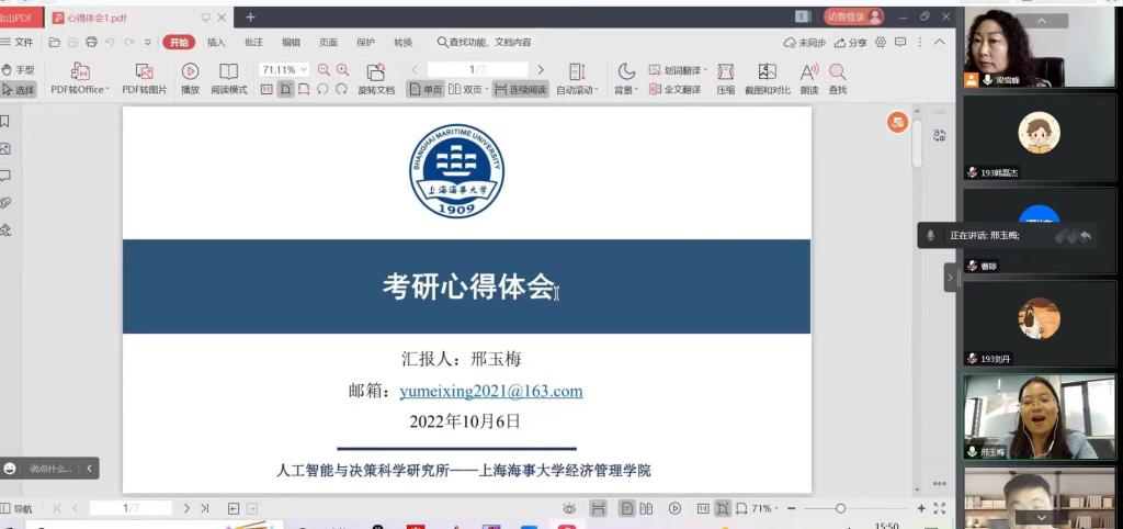 会议还邀请了两位在读博士校友和18级读研的两位同学分别分享了考研经验,对考研的前期准备、考研阶段复习、考研注意事项以及考研后可能遇到的一系列问题进行了详细介绍。