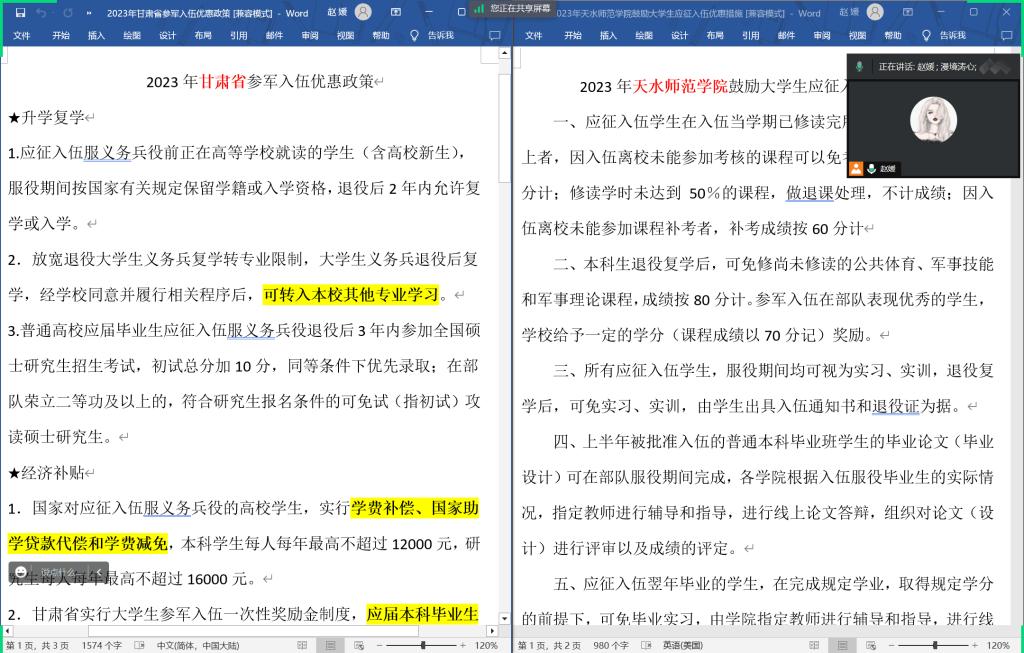 “携笔从戎 无上光荣”,为激发学院学生报效祖国、应征入伍的热情,帮助大学生了解、掌握应征入伍相关政策,营造应征光荣的浓厚氛围。2023年4月21日,澳门十大信誉好的网站举办了2023年下半年大学生应征入伍政策解读宣讲会。宣讲会通过线上线下相结合的方式召开,会议由学院分管征兵工作的辅导员赵媛老师主持,学院26个班级的班长、团支书、大数据专业学生及学院有应征入伍意愿的学生参加了会议。