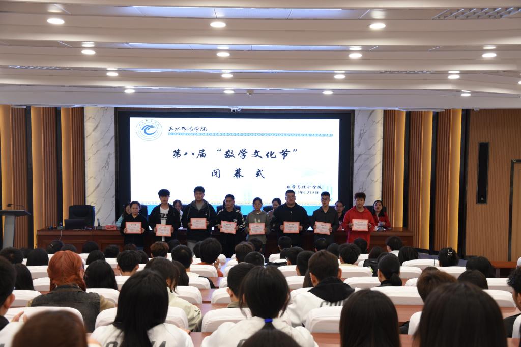 学院相关负责人在讲话中指出,本届“数学文化节”活动形式多样,内容丰富,有效且针对性地提升了同学们学习数学的能力,在带动学术氛围的同时提高了同学们的学习热情,也丰富了校园文化的内涵。希望同学们不仅能够享受学习的过程,有刻苦钻研的精神,还要学会应对挫折,领悟团队协作的重要性,把本届“数学文化节”上表现出的良好品质和精神财富带到今后的学习和生活中,绽放出更加绚丽的色彩。并代表学院向所有参与策划、组织和宣传本届“数学文化节”各项工作的老师与同学们表达了感谢,对在本届数学文化节中的获奖同学表示祝贺。