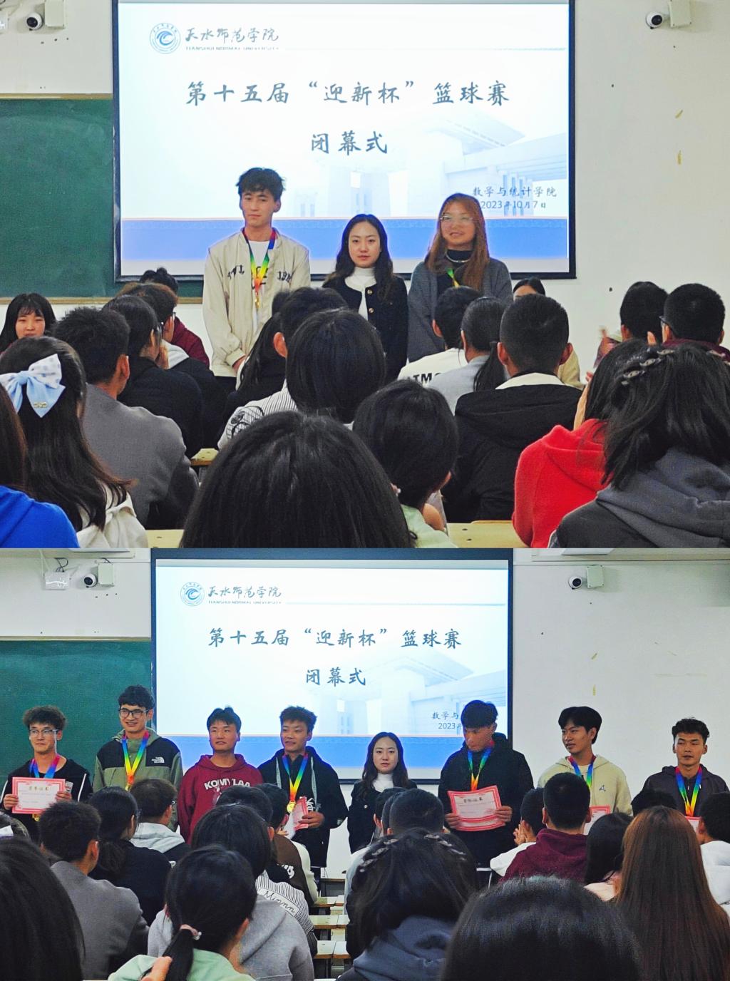 学院18支参赛队经过激烈的角逐和淘汰赛制,2022级统计学1班获得冠军,2023级数学与应用数学2班获得优秀组织奖,马龙等同学获得“三分王”个人奖,田晓斌等同学获得“优秀裁判奖”。